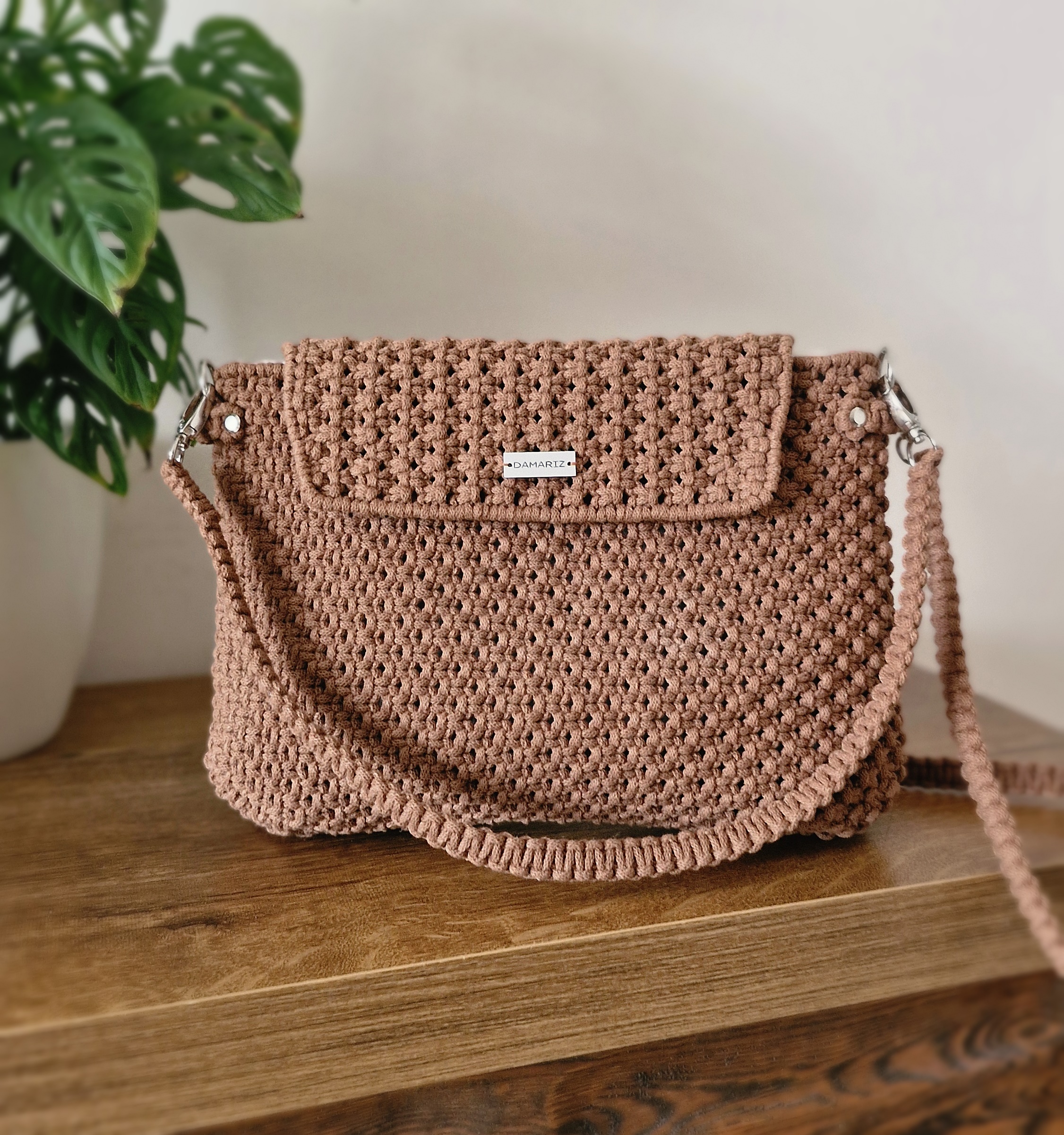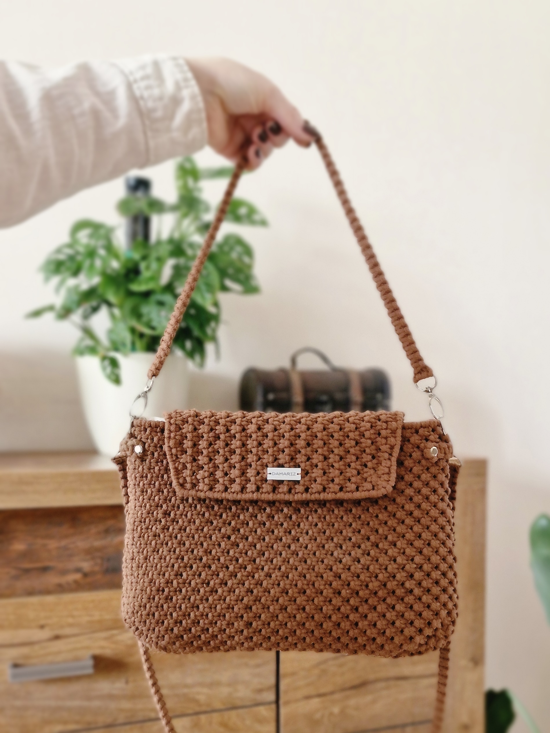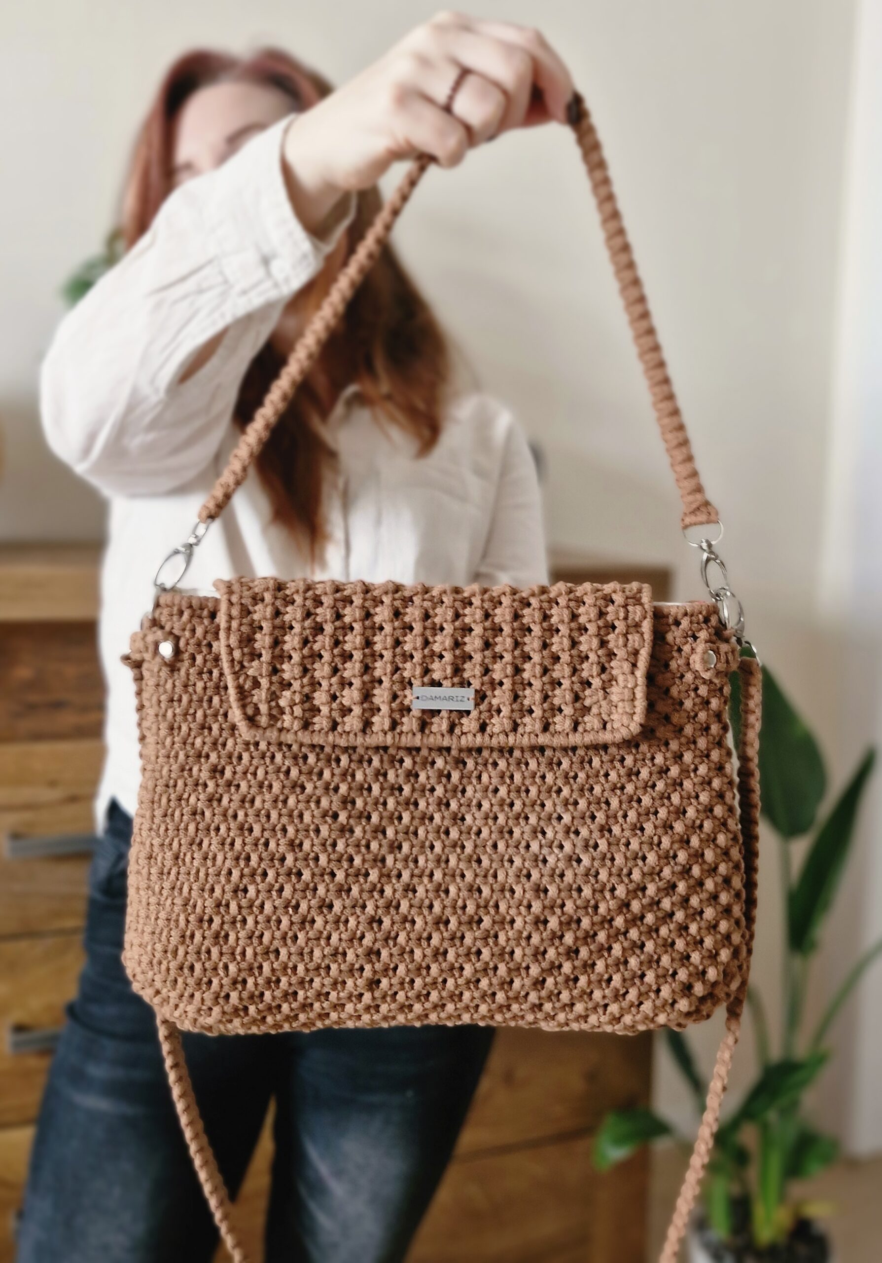 Casualowa torebka ze sznurka z klapką – karmelowa- od ręki