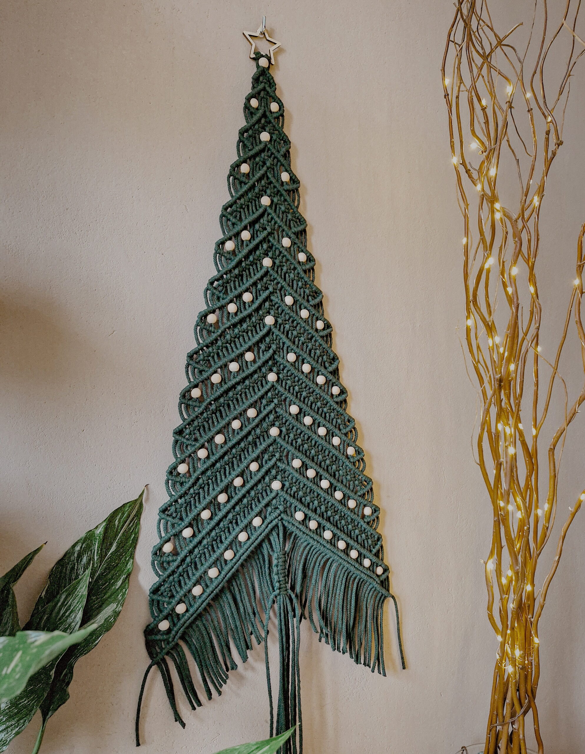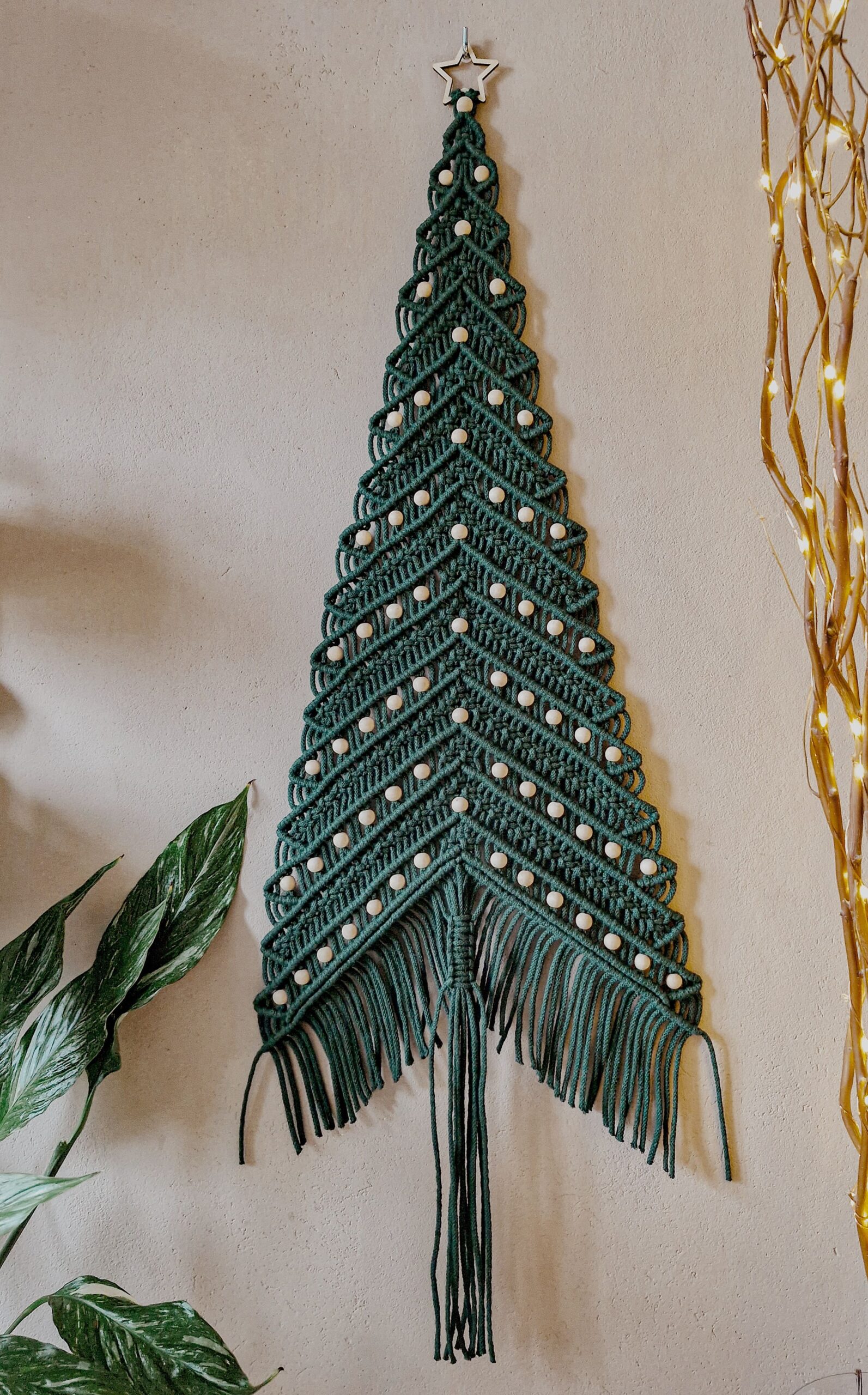 Makrama ścienna w formie choinki to delikatna, naturalna ozdoba, która wprowadzi do Twojego domu świąteczny klimat. Ta nienachalna, świąteczna dekoracja pięknie prezentuje się w otoczeniu innych przedmiotów naturalnego pochodzenia np. drewnianych. Polecam ją w szczególności właścicielom czworonogów, które mają w nawyku podkradać ozdoby ze stojącej choinki, a także osobom ceniącym sobie ekologię i preferującym święta bez plastiku. Jeśli cenisz sobie minimalistyczne podejście do świąt, ten dekor również świetnie sprawdzi się w Twoim domu.