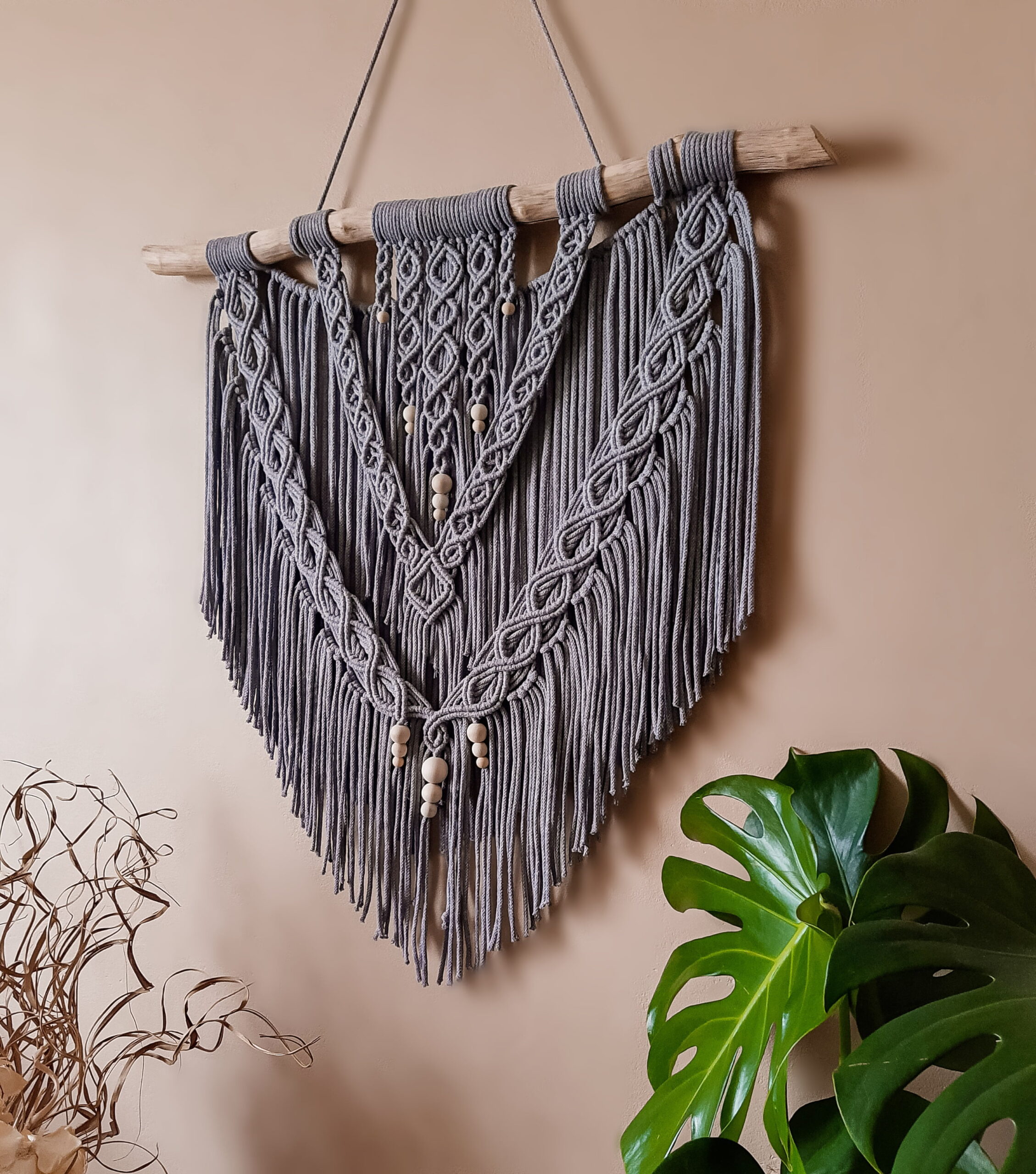 Makramy ścienne świetnie komponują się we wnętrzach w których znajduje się duża ilość roślin, w ogrodach zimowych, na patio.