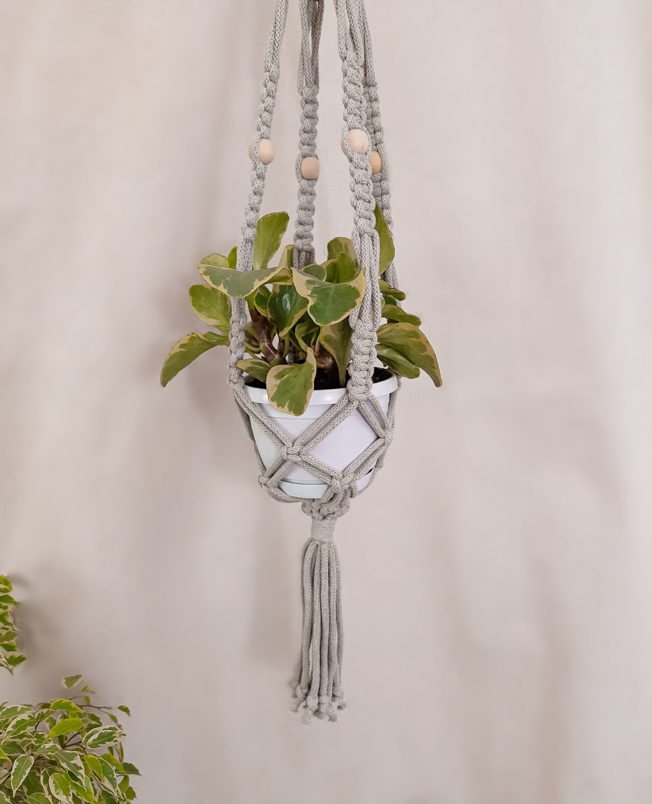 Kwietnik – makrama Wooden drops – wybierz kolor
