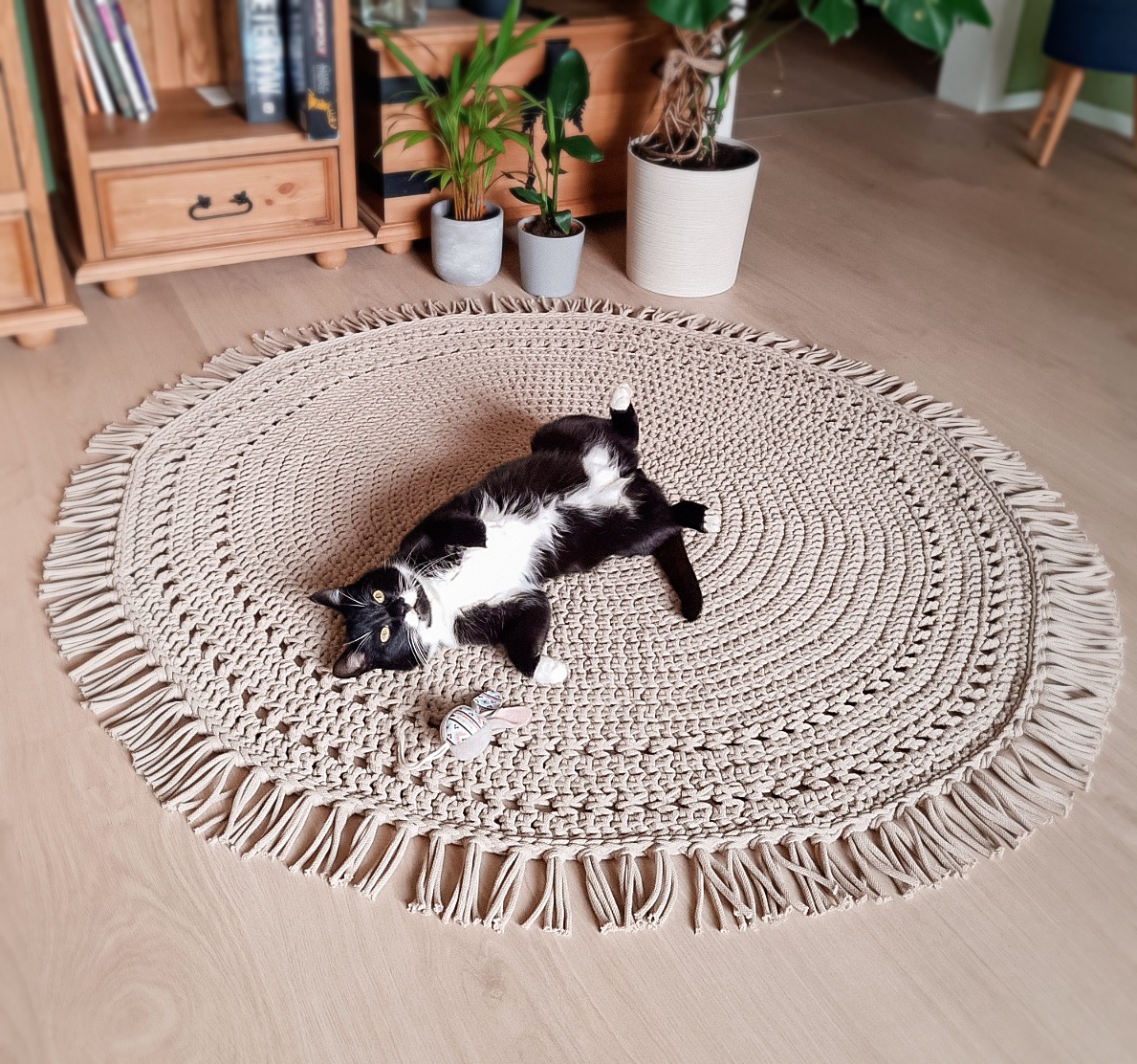 Dywan z miękkiego, bawełnianego sznurka to świetny dodatek dla tych, którym bliski jest królujący obecnie we wnętrzach styl boho i skandi. Nadaje ciepłego klimatu pomieszczeniu, aż trudno będzie oprzeć się chęci, aby usiąść na nim na chwilę z kubkiem herbaty i dobrą książką.