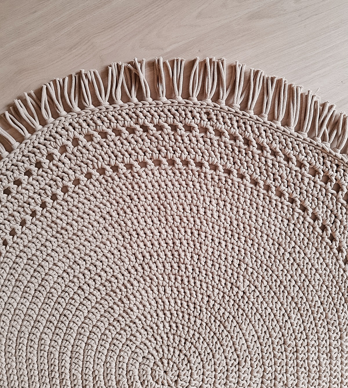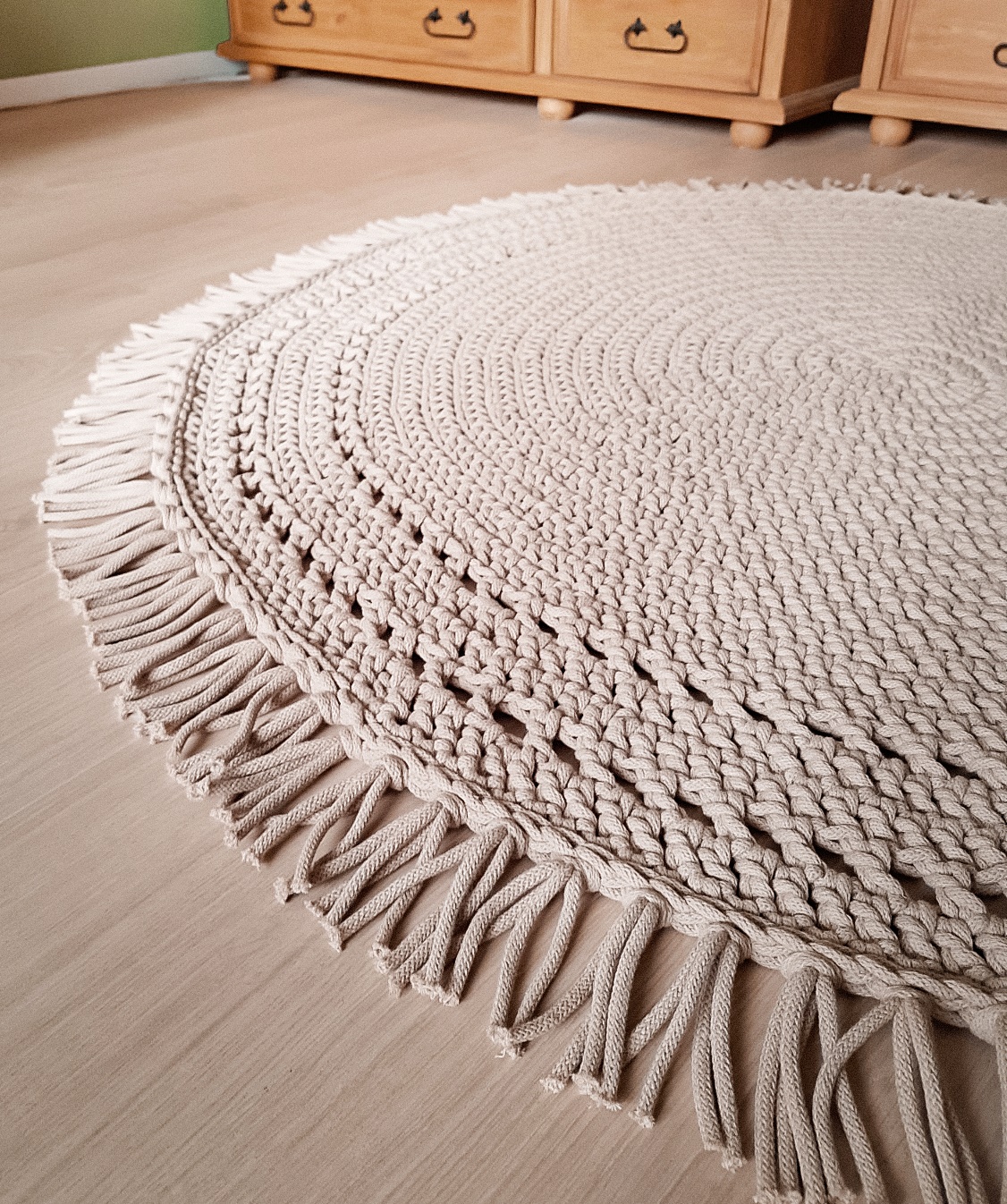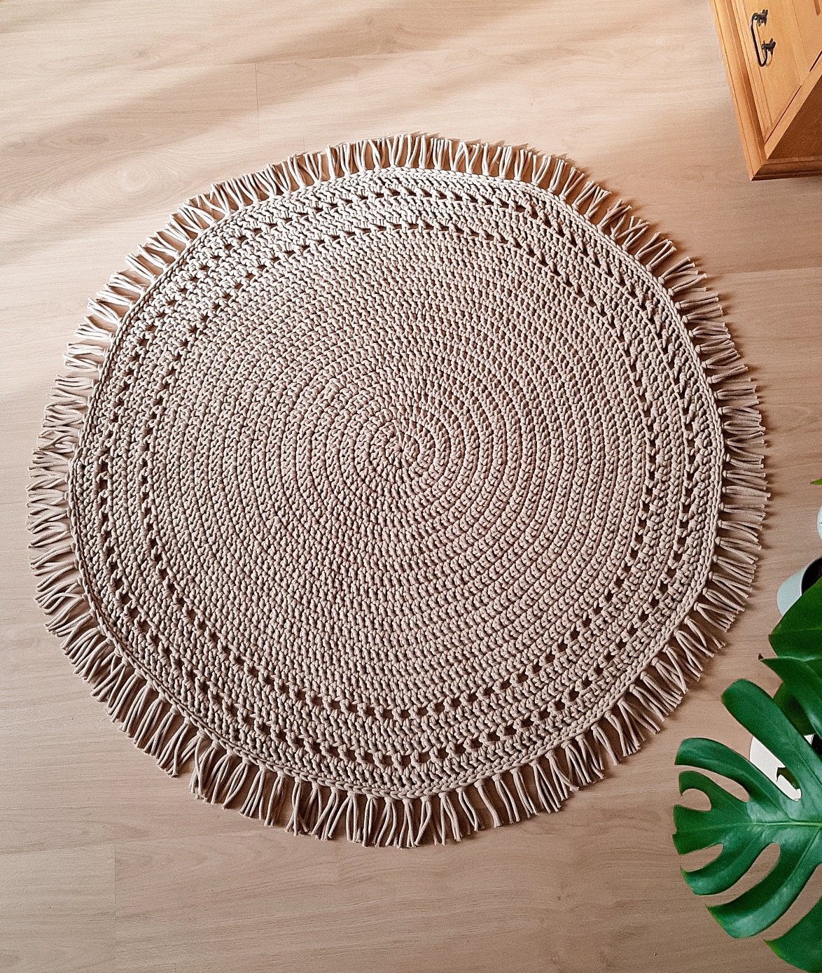 Okrągły dywan ze sznurka w stylu boho – kartonowy 140 cm – od ręki