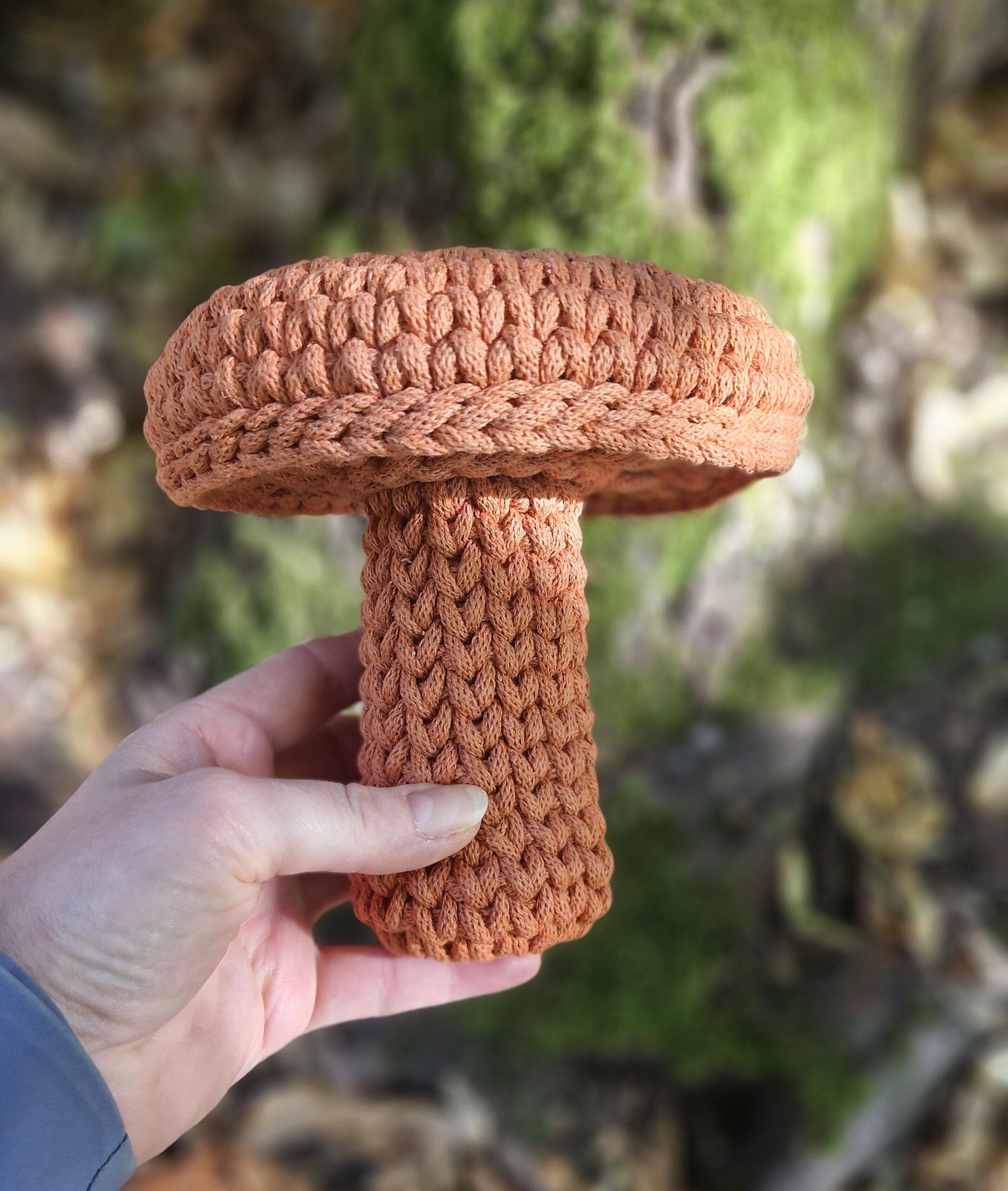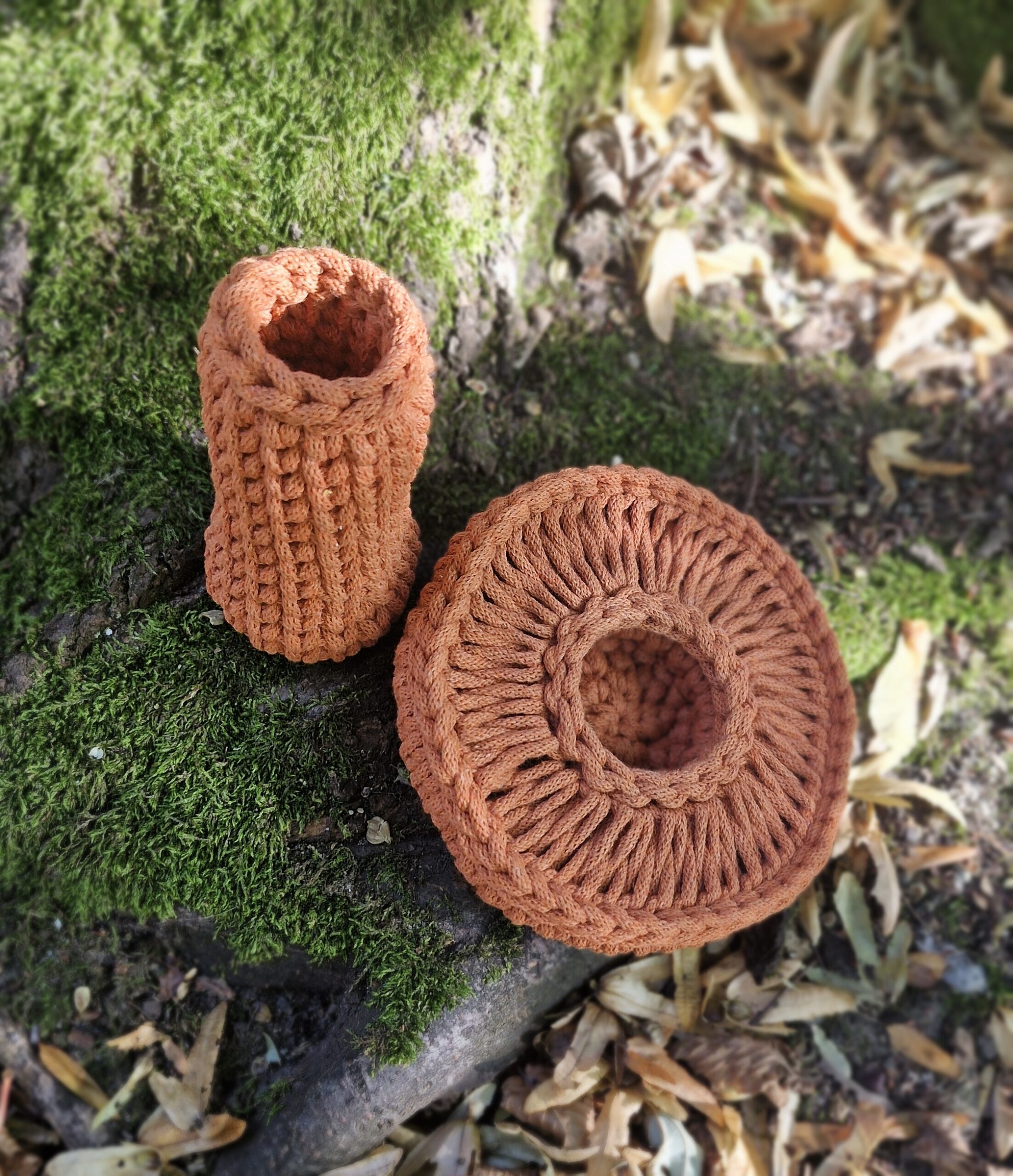 Koszyk – dekoracja jesienna w formie grzybka rydza świetnie sprawdzi się zarówno w pokoju dziecięcym jak i jako dekoracja przedpokoju czy salonu. Wieczko koszyka przypomina kapelusz grzyba, który nakłada się na nóżkę lekko dociskając. Można w niej chować drobiazgi np. klucze.