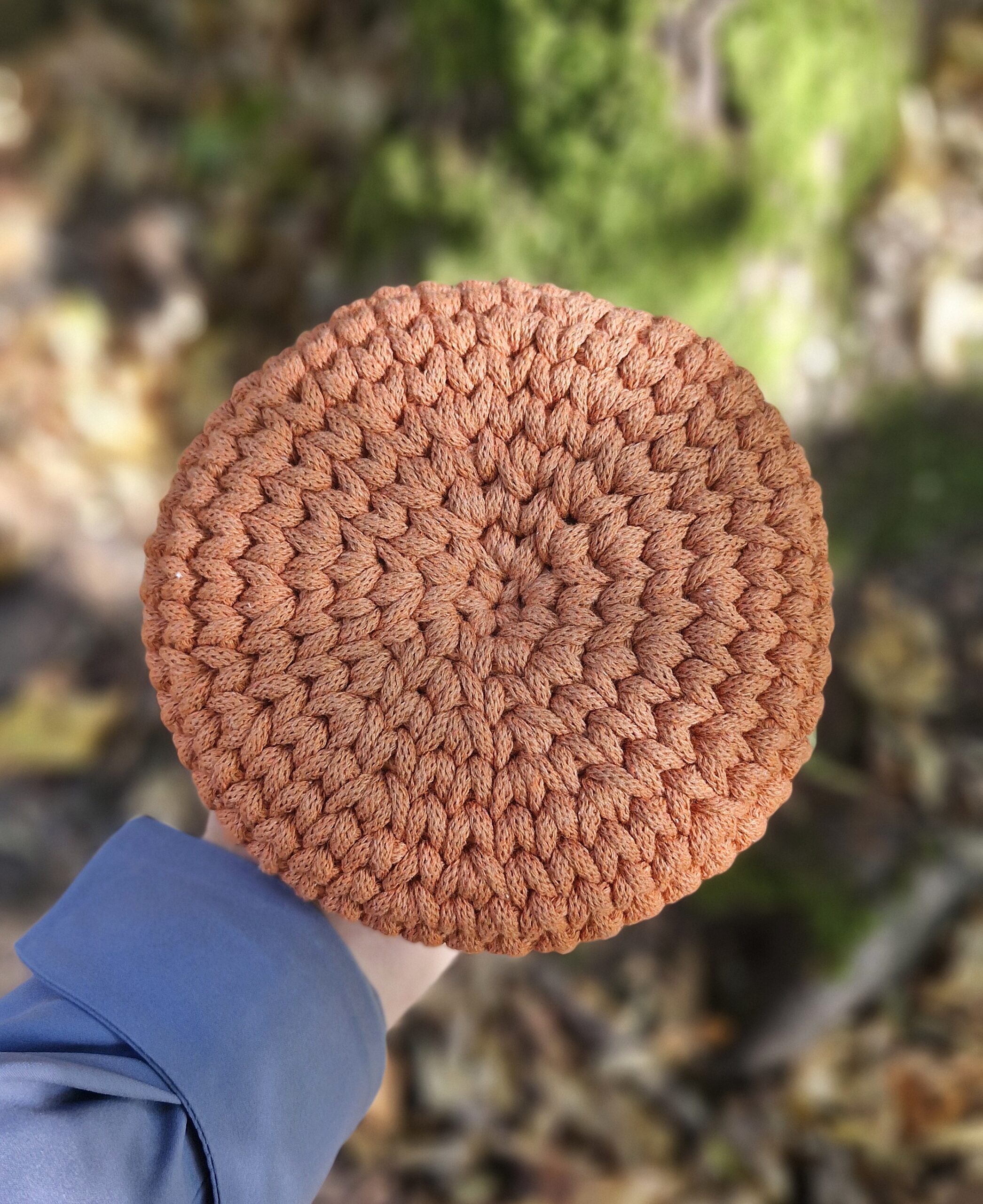 Zalecam czyszczenie przez odkurzanie. Produkt można prać ręcznie przy użyciu miękkiej szczoteczki i delikatnego detergentu bądź w pralce w temperaturze 30 stopni po ówczesnym wypełnieniu go bawełnianym ręczniczkiem. Wykonałam go ze sztywnego bawełnianego sznurka z rdzeniem.