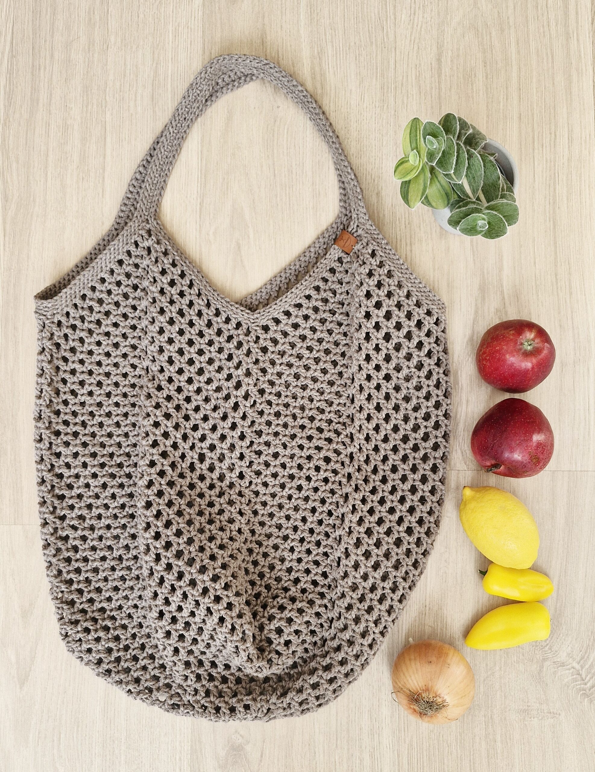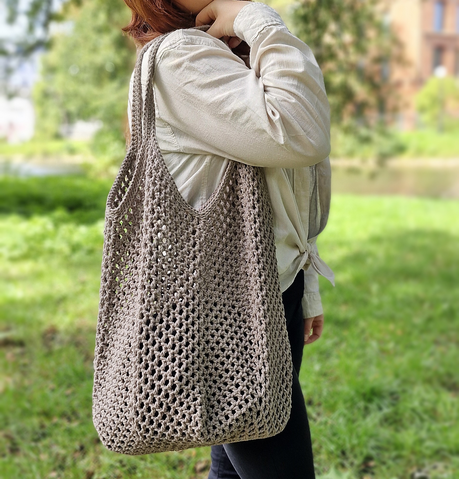 Ekologiczna torba – siatka – ziemista, rozmiar medium – od ręki