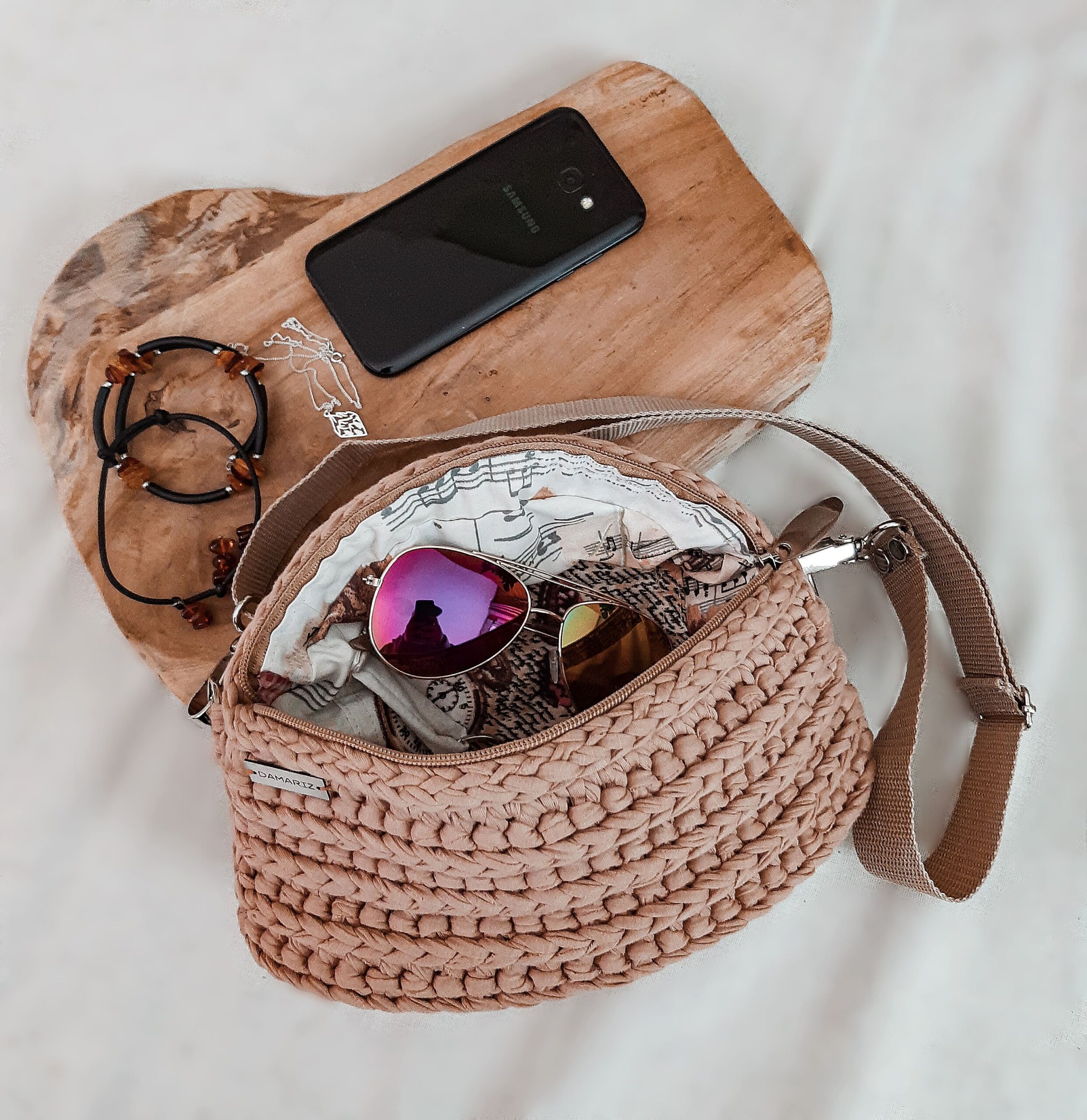 Nerka wykonana jest ręcznie z użyciem szydła z wysokiej jakości T-shirt yarn premium 100% bawełna z recyklingu – kupując ją nie musisz mieć wyrzutów sumienia, że zanieczyszczasz planetę. Przez to, że powstała z naturalnego materiału jest miękka, przyjemna w dotyku i nie elektryzuje. Wewnątrz znajduje się dobrana pod kolor body bawełniana, wzorzysta podszewka z kieszonką oraz karabińczykiem do przypięcia kluczy – dzięki temu zawsze będziesz wiedzieć gdzie są i obejdzie się bez zbędnego szukania.