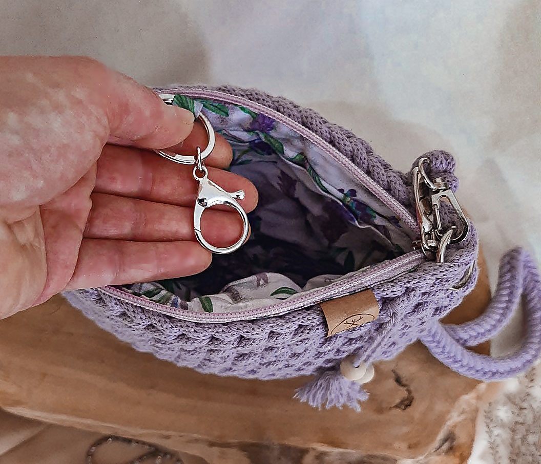 City bag to torebka, która powstała z inicjatywy moich klientek – na podstawie wzoru kosmetyczki. Stworzyłam ją na Waszą prośbę aby mogła Ci towarzyszyć w szybkim wyjściu na miasto albo na spacer z podstawowymi, najpotrzebniejszymi rzeczami. Wykonałam ją w lekkim ściegu, przez co zredukowałam maksymalnie jej wagę, abyś mogła czuć się z nią swobodnie i komfortowo. Jej design świetnie komponuje się ze swobodnym, niezobowiązującym stylem, a dekoracyjne chwosty dodają jej niepowtarzalnego uroku.