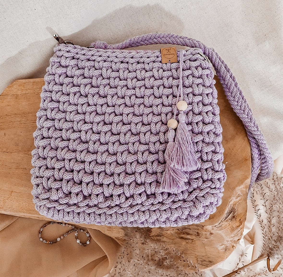 Torebka ze sznurka City bag – lawendowa – od ręki