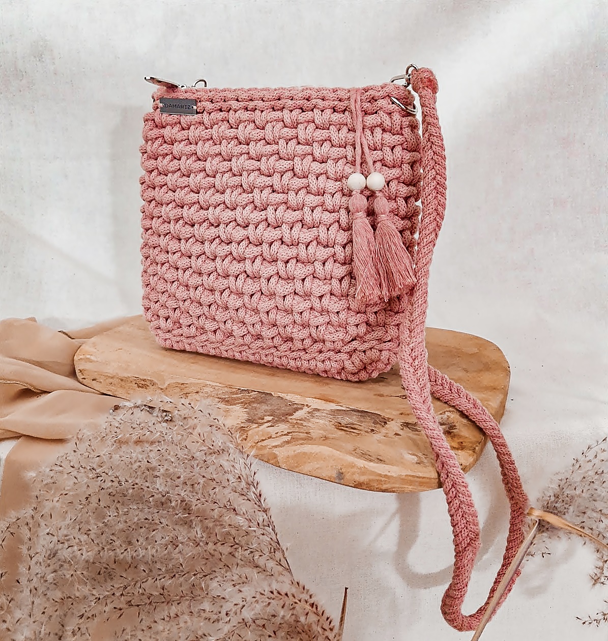 City bag to torebka, która powstała z inicjatywy moich klientek – na podstawie wzoru kosmetyczki. Stworzyłam ją na Waszą prośbę aby mogła Ci towarzyszyć w szybkim wyjściu na miasto albo na spacer z podstawowymi, najpotrzebniejszymi rzeczami. Wykonałam ją w lekkim ściegu, przez co zredukowałam maksymalnie jej wagę, abyś mogła czuć się z nią swobodnie i komfortowo. Jej design świetnie komponuje się ze swobodnym, niezobowiązującym stylem, a dekoracyjne chwosty dodają jej niepowtarzalnego uroku.