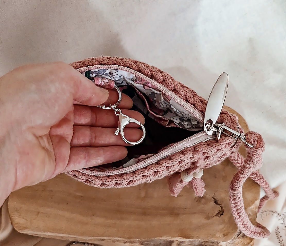 Wewnątrz torebki znajduje się zapinana na zamek błyskawiczny podszewka z kieszonką oraz karabińczykiem na klucze – dzięki temu zawsze będziesz wiedzieć gdzie są i obejdzie się bez zbędnego szukania.