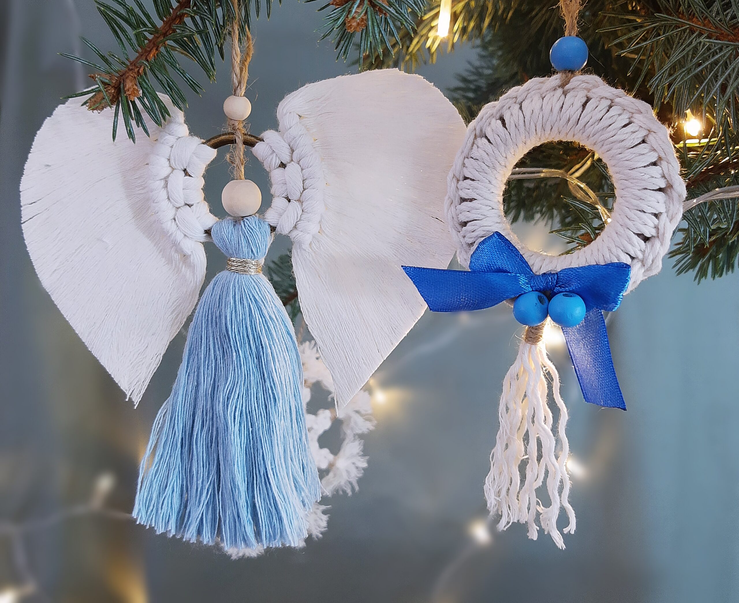Zestaw ozdób świątecznych 2 szt. – aniołek+ rozetka – błękitny