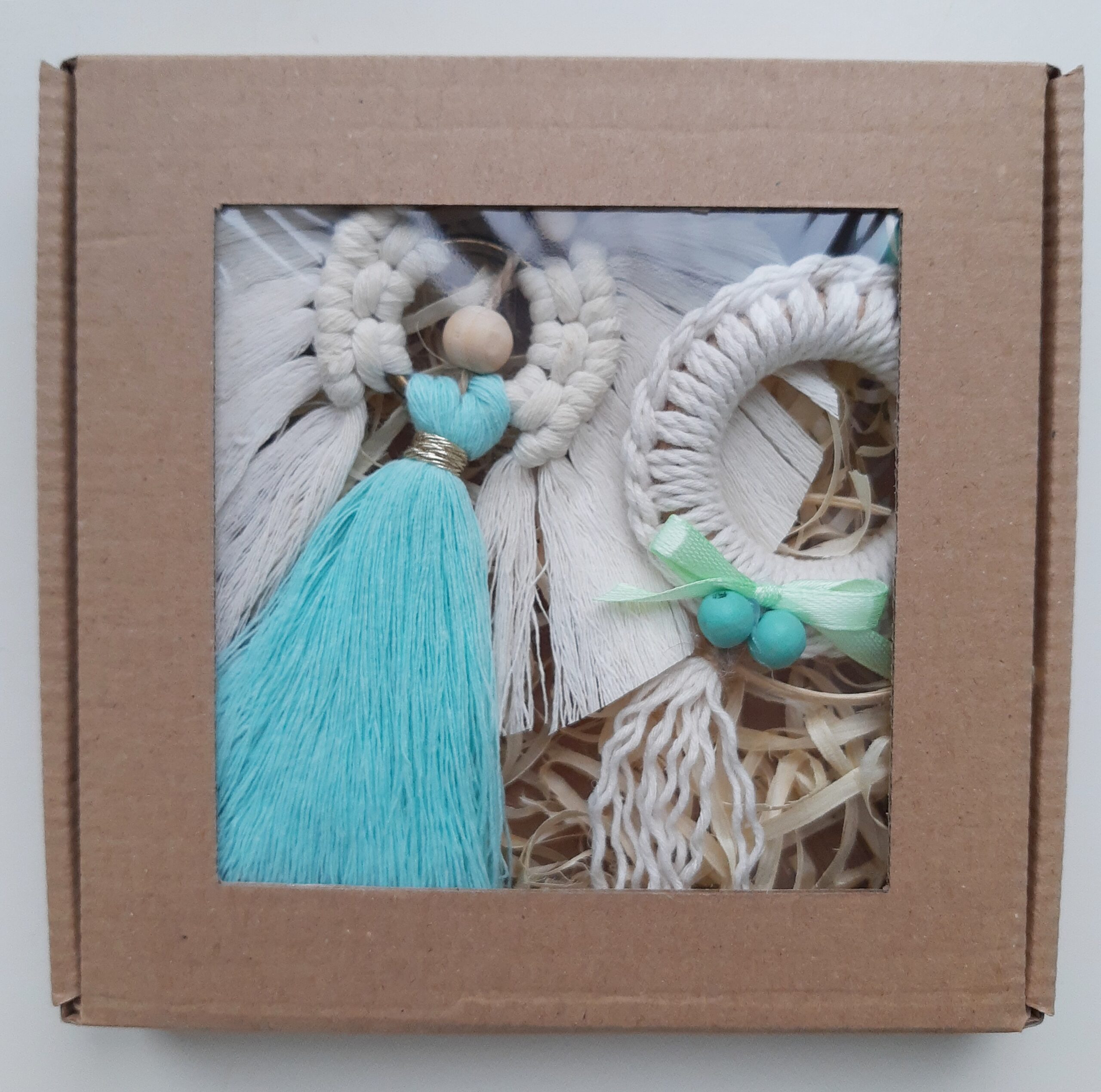 Zestaw zapakowany jest w eko pudełeczko z okienkiem, które przewiązuję papierową raffią z przewieszoną świąteczną etykietką – ozdoby tak zapakowane możesz podarować w prezencie, od razu z informacją dla kogo prezent jest adresowany.