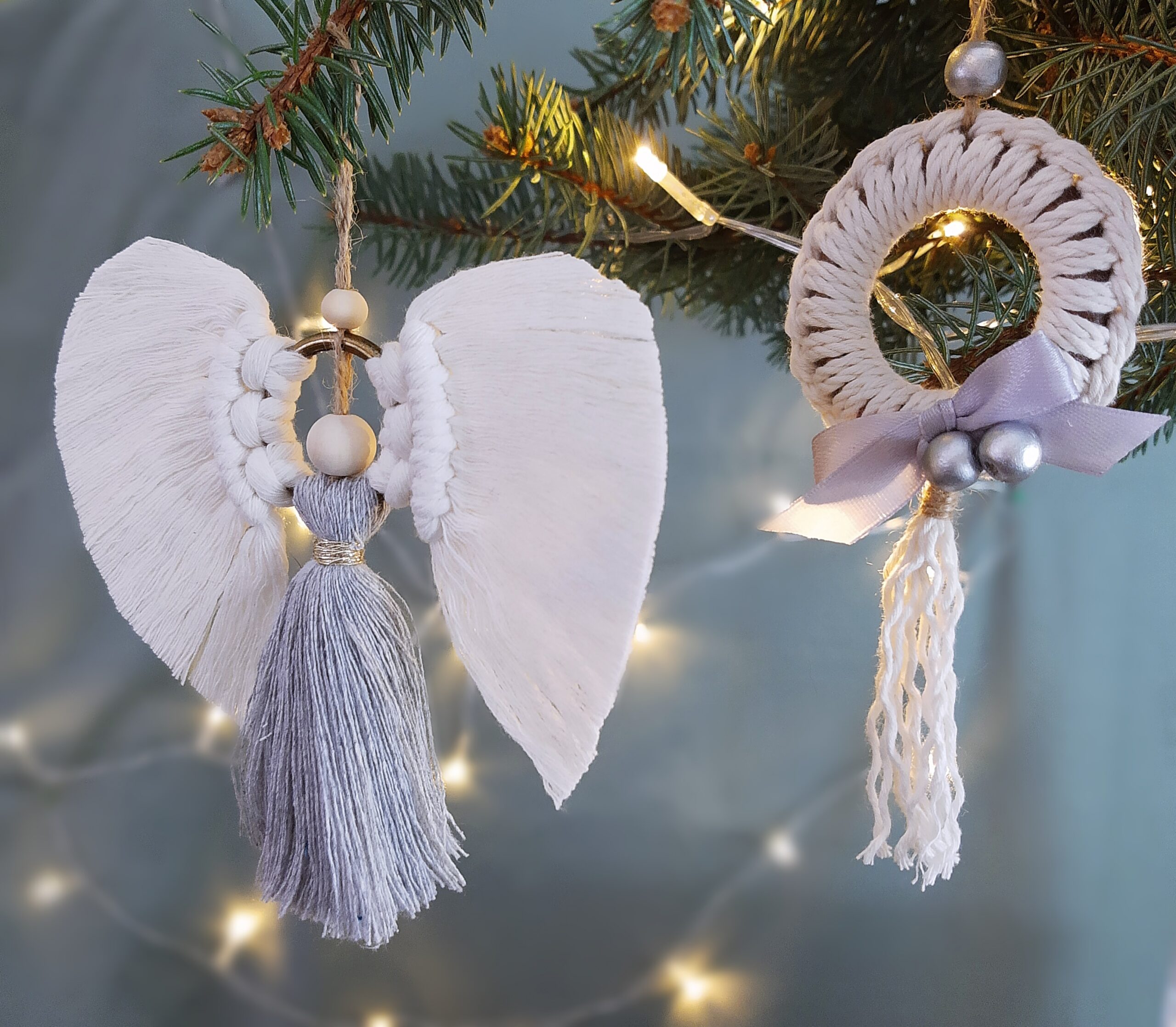 Zestaw ozdób świątecznych 2 szt. – aniołek + rozetka – srebrny