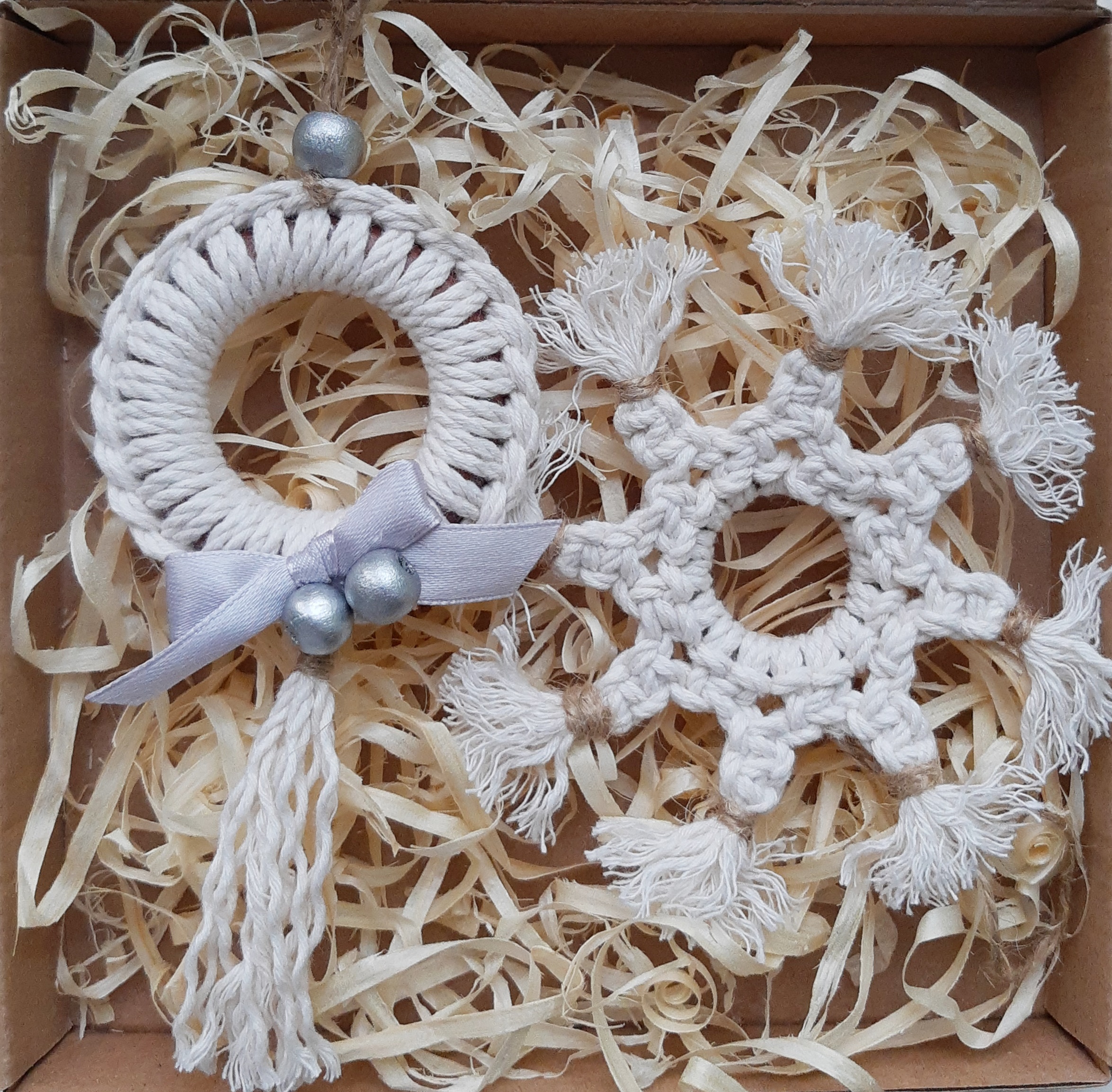 Zestaw ozdób wykonałam ręcznie przy użyciu w większości naturalnych materiałów – głównie bawełny a także drewnianych elementów. Stworzyłam je z myślą o osobach, którym bliskie są delikatne, naturalne dekoracje, które przywołują wspomnienia choinki u babci, skromnej i pięknej, z ozdobami wykonanymi ręcznie przez nią oraz jej dzieci albo wnuki.