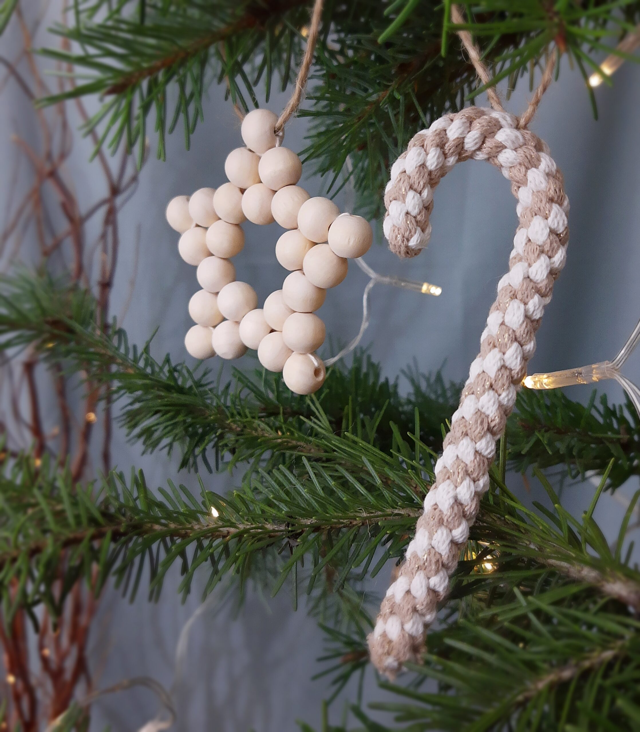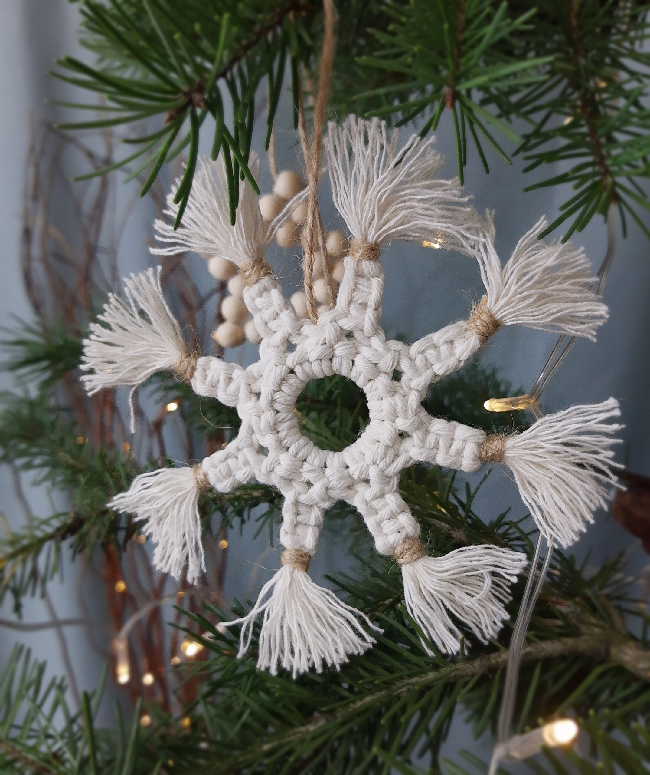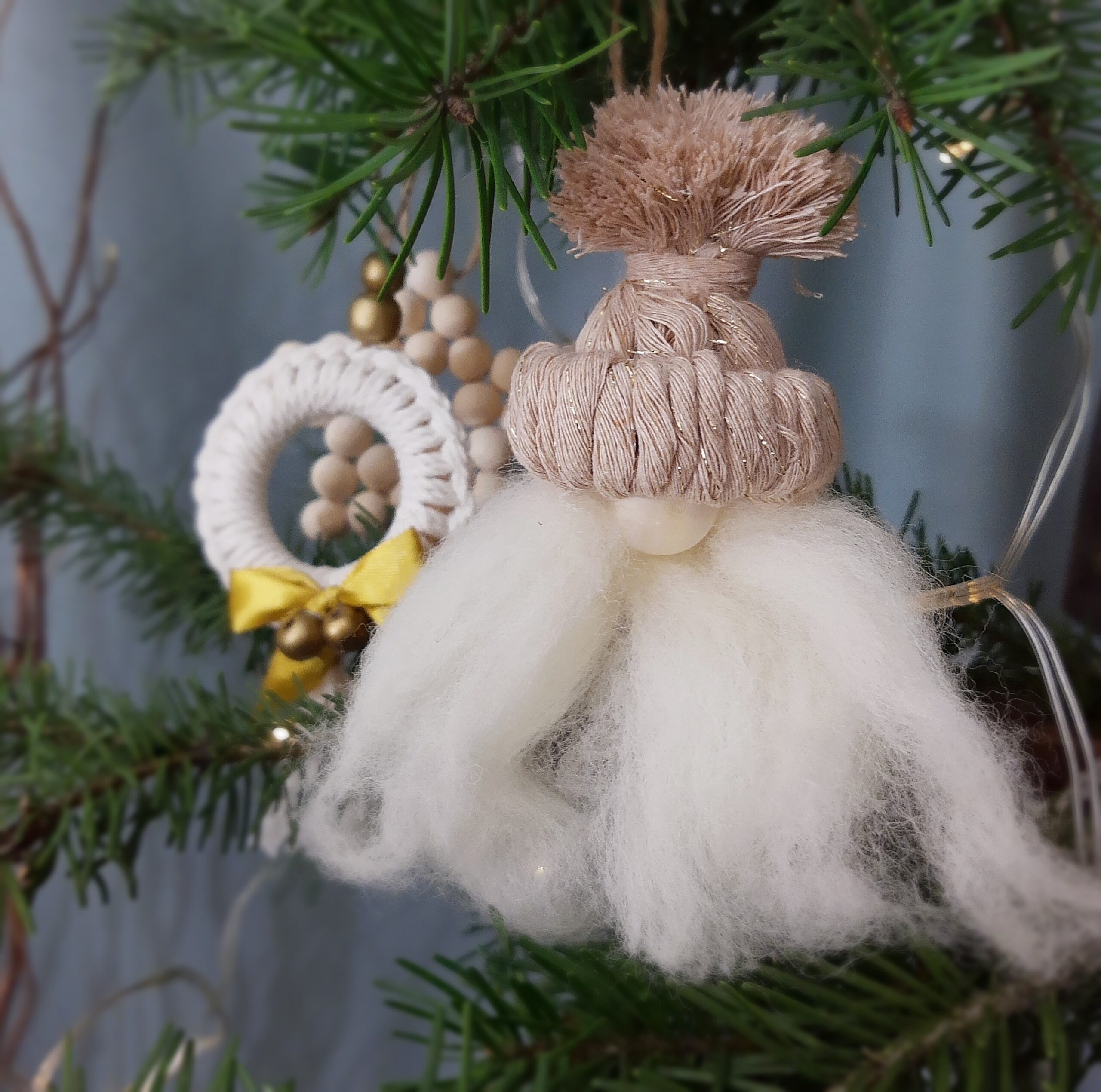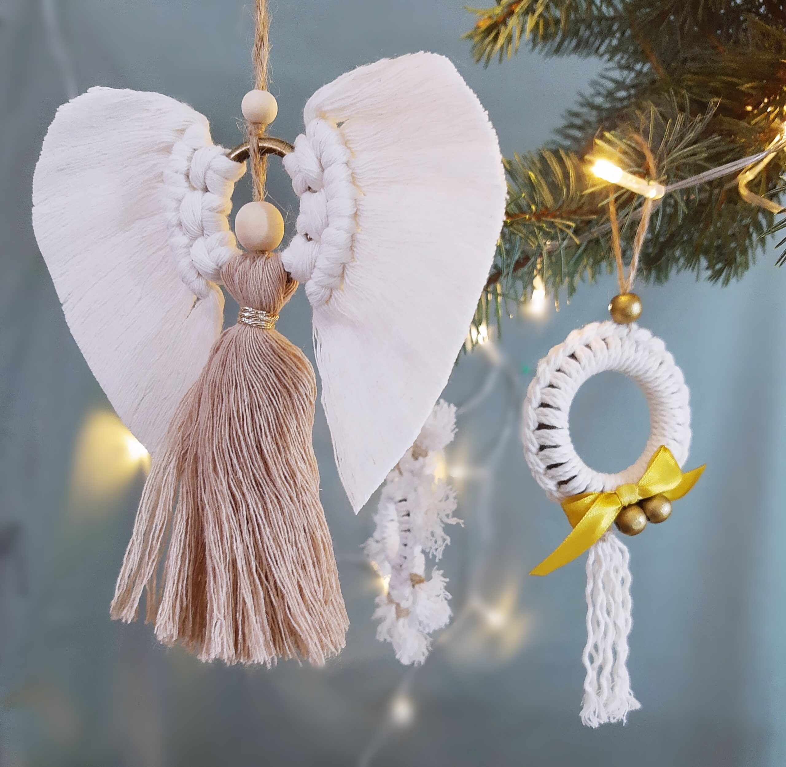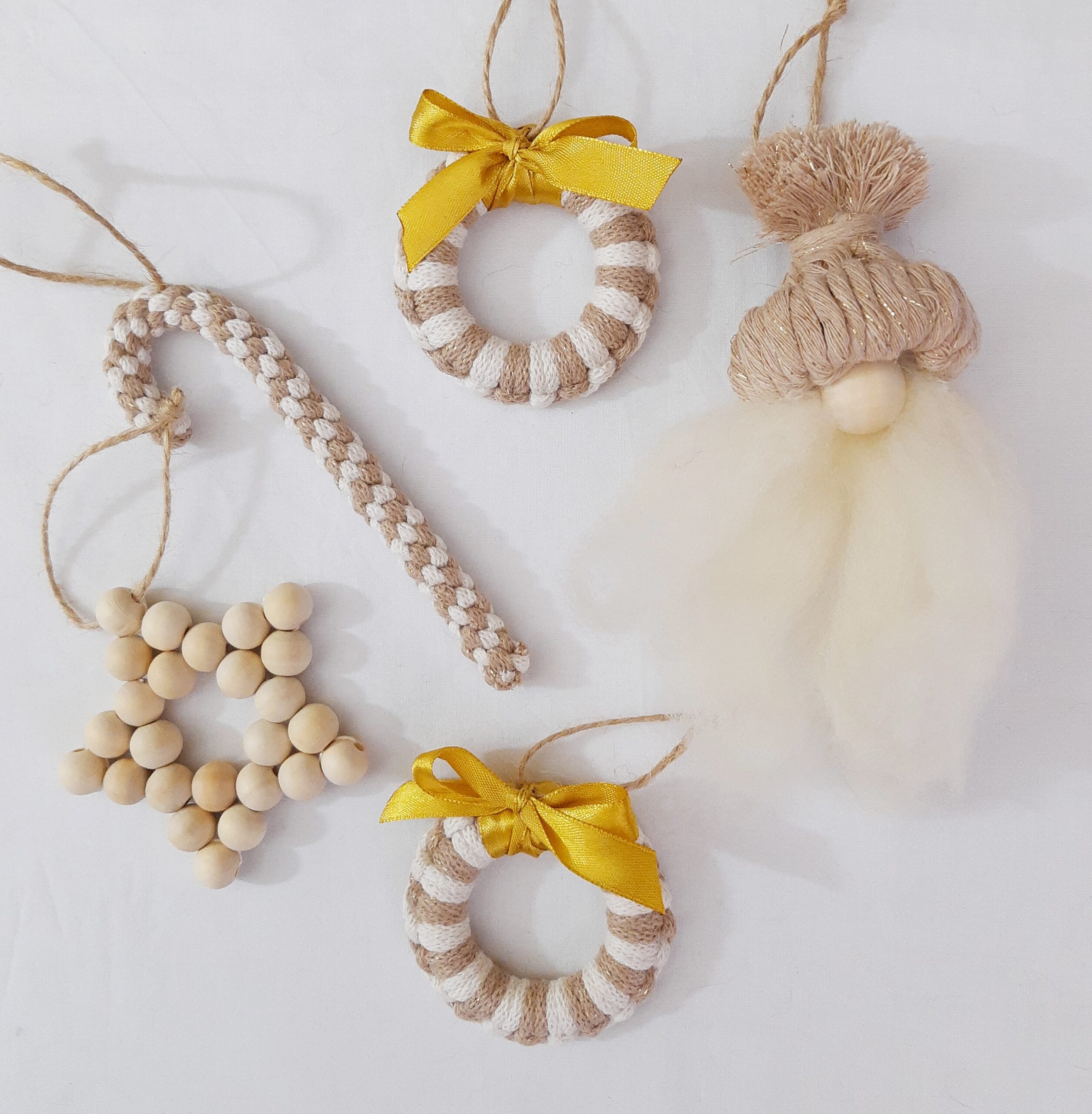 Zestaw ozdób wykonałam ręcznie przy użyciu w większości naturalnych materiałów – głównie bawełny a także drewnianych elementów. Stworzyłam je z myślą o osobach, którym bliskie są delikatne, naturalne dekoracje, które przywołują wspomnienia choinki u babci, skromnej i pięknej, z ozdobami wykonanymi ręcznie przez nią oraz jej dzieci albo wnuki.