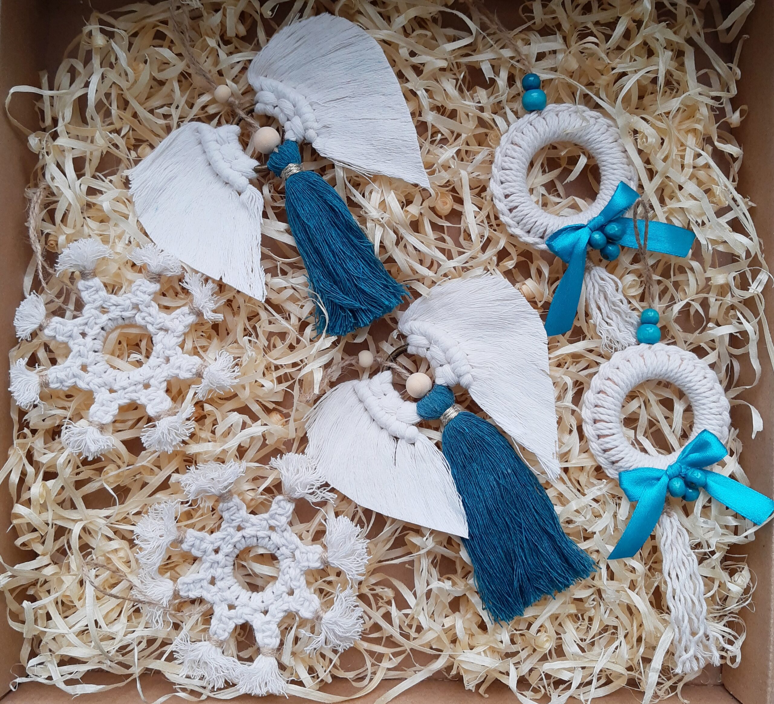 Zestaw ozdób świątecznych 6 szt. z aniołami – morski